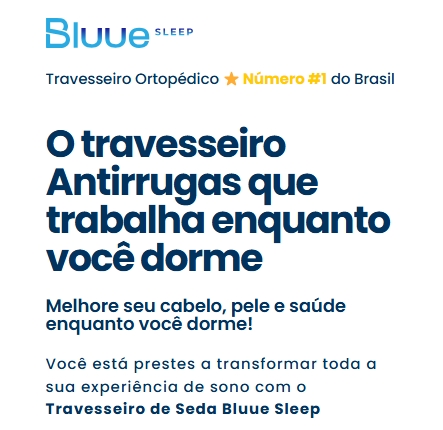 Bluue Sleep™ é o segredo mais bem guardado de supermodelos, cabeleireiros, especialistas em beleza e dermatologistas de todo o mundo. É um travesseiro ortopédico de seda totalmente natural e hipoalergênico e projetado por nossa equipe de especialistas que faz maravilhas pelo seu cabelo e pele enquanto você dorme! Além de proporcionar alívio das dores.